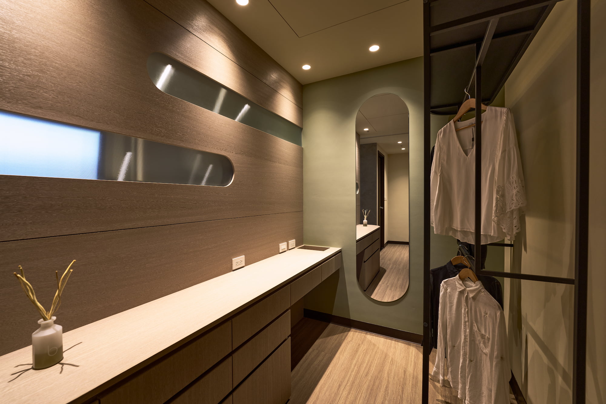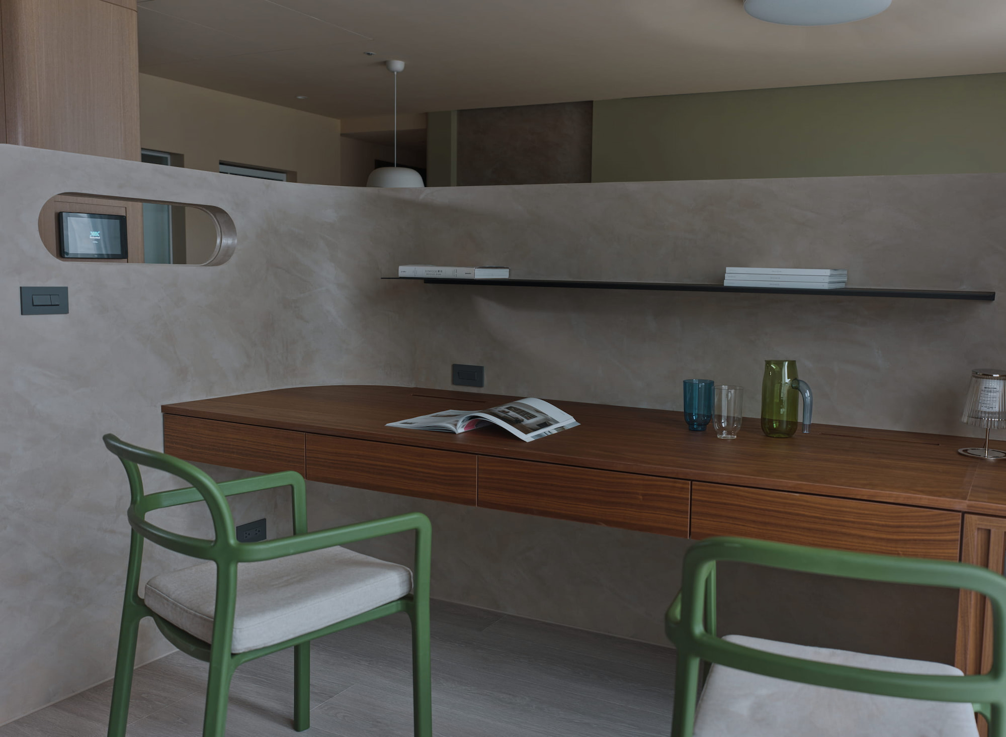 我們希望能結合實用主義和美學概念,全屋配置吊隱式高效能除濕機,調節室內濕度與溫度,隱藏笨重的機體,考量未來保養維護的便利性,設置了大尺寸維修孔。材質選擇上全屋天然礦物塗料,確保室內空氣品質純淨,將有害物質的威脅降至最低,為孩子締造出一個舒適健康的成長天地。