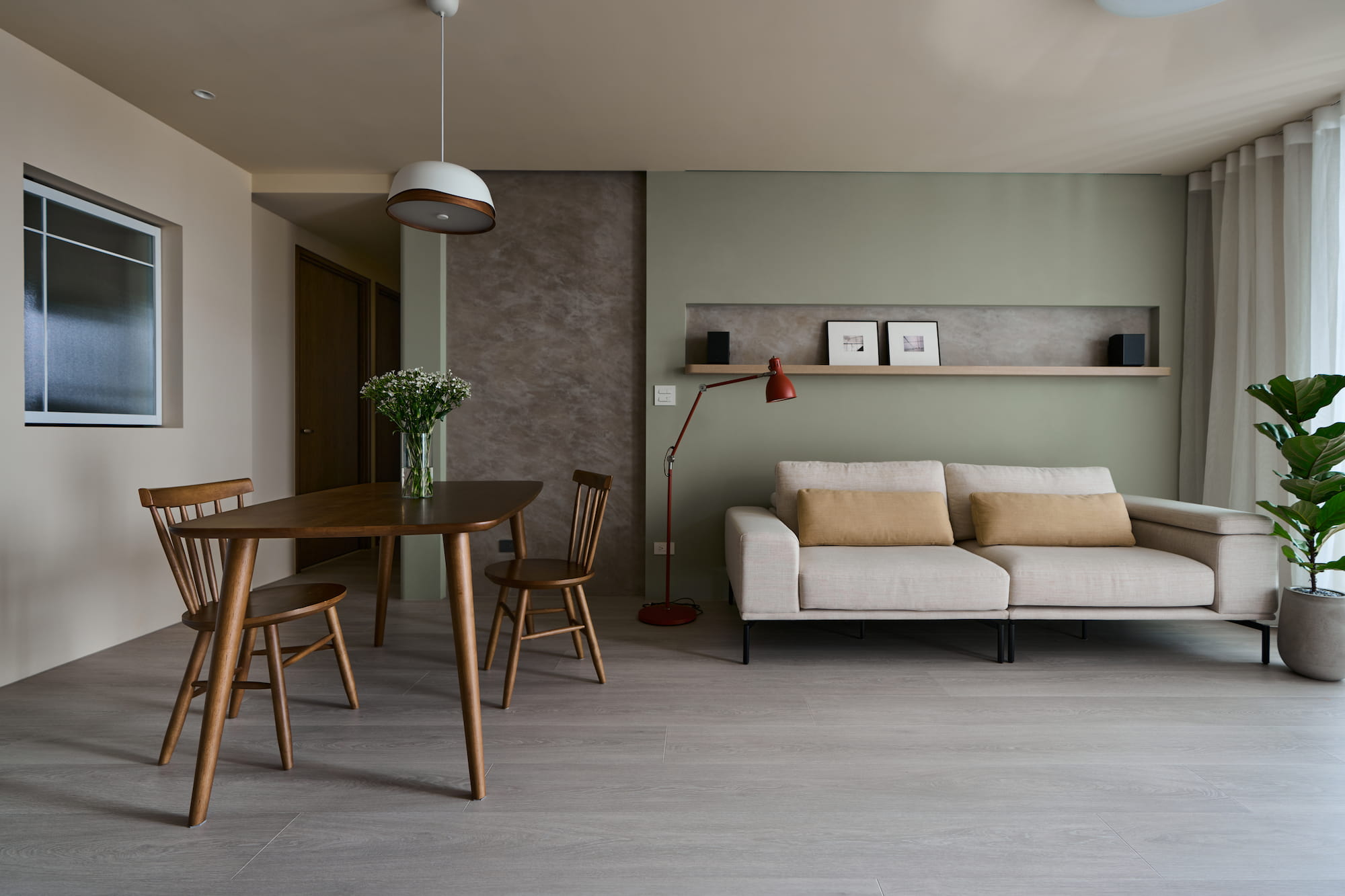 面對現代生活的快節奏,規劃出便捷的慢舒活住宅就相當重要,若再加上育兒需求,營造適合孩子身心發展的環境,更是父母的首要課題。這次屋主是一對擁有設計背景的夫妻,重視住宅的使用機能,也提前將育兒的願景放入新居中,因此我們從幾種面向切入設計。