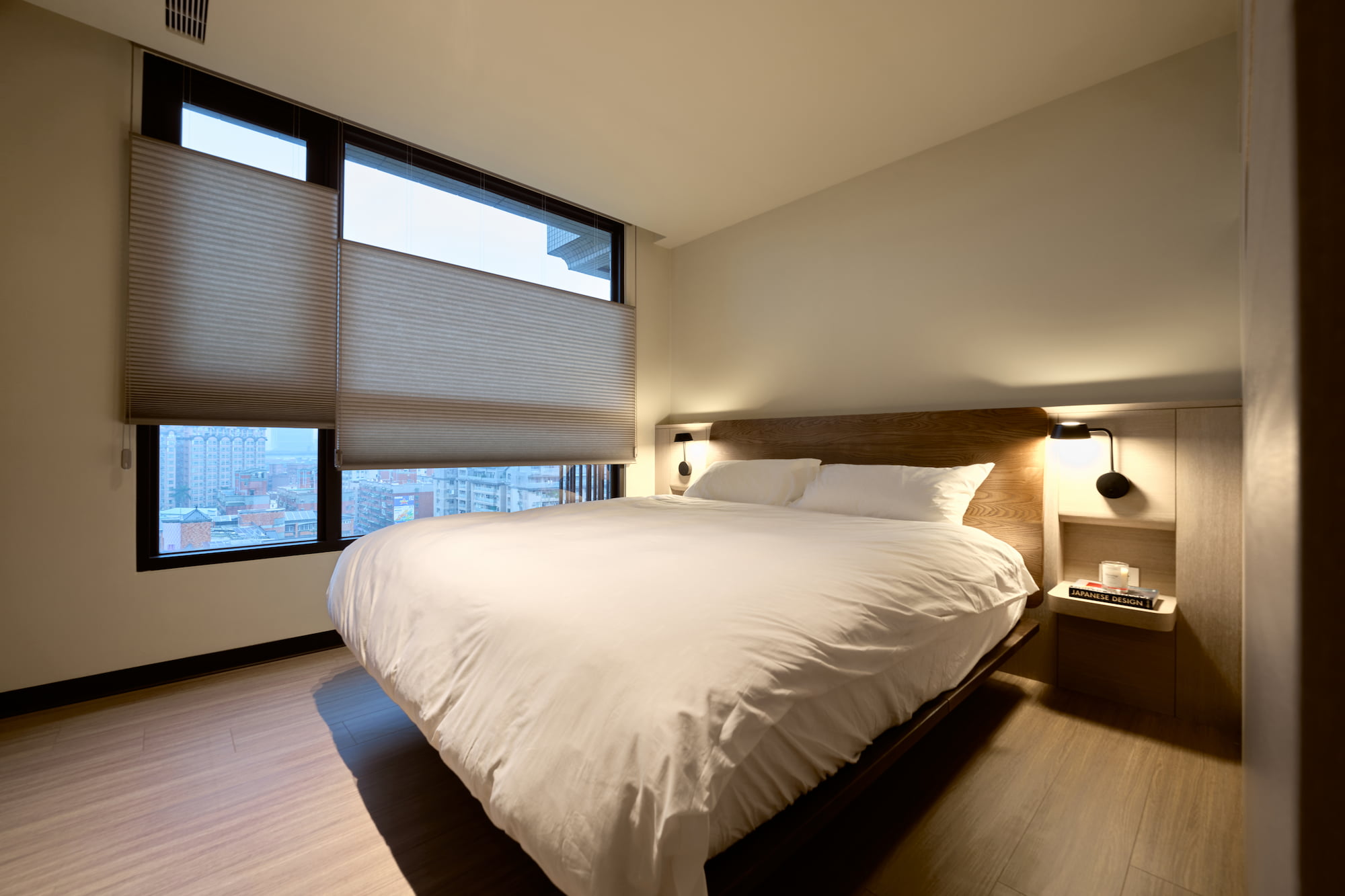 空間規劃方面,架高式開放書房典藏大量書籍,宛如一座知識的燈塔不僅滿足了成人的工作需求,更成為孩子未來探索世界的絕佳起點。主臥室中,梳妝台與更衣區的巧妙分隔,確保了私密性,也提升空間利用率。為了從容應對家庭結構的未來變化,次臥室被賦予了多重角色,牆面上別出心裁地開闢窗景,使其既可作為溫馨的兒童房,也能靈活變身為高效的辦公區域。廚房採用連動拉門設計,不僅美觀大方,更便於在烹飪的同時關心孩子的一舉一動。