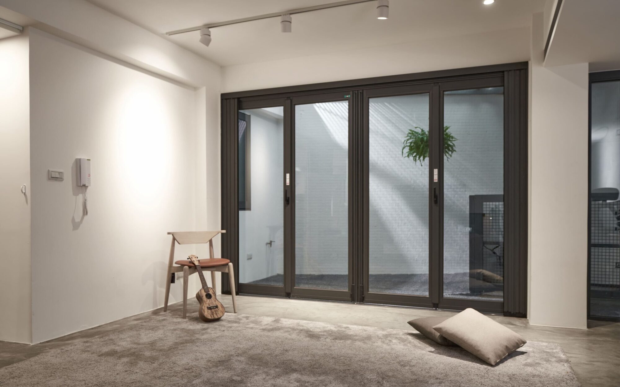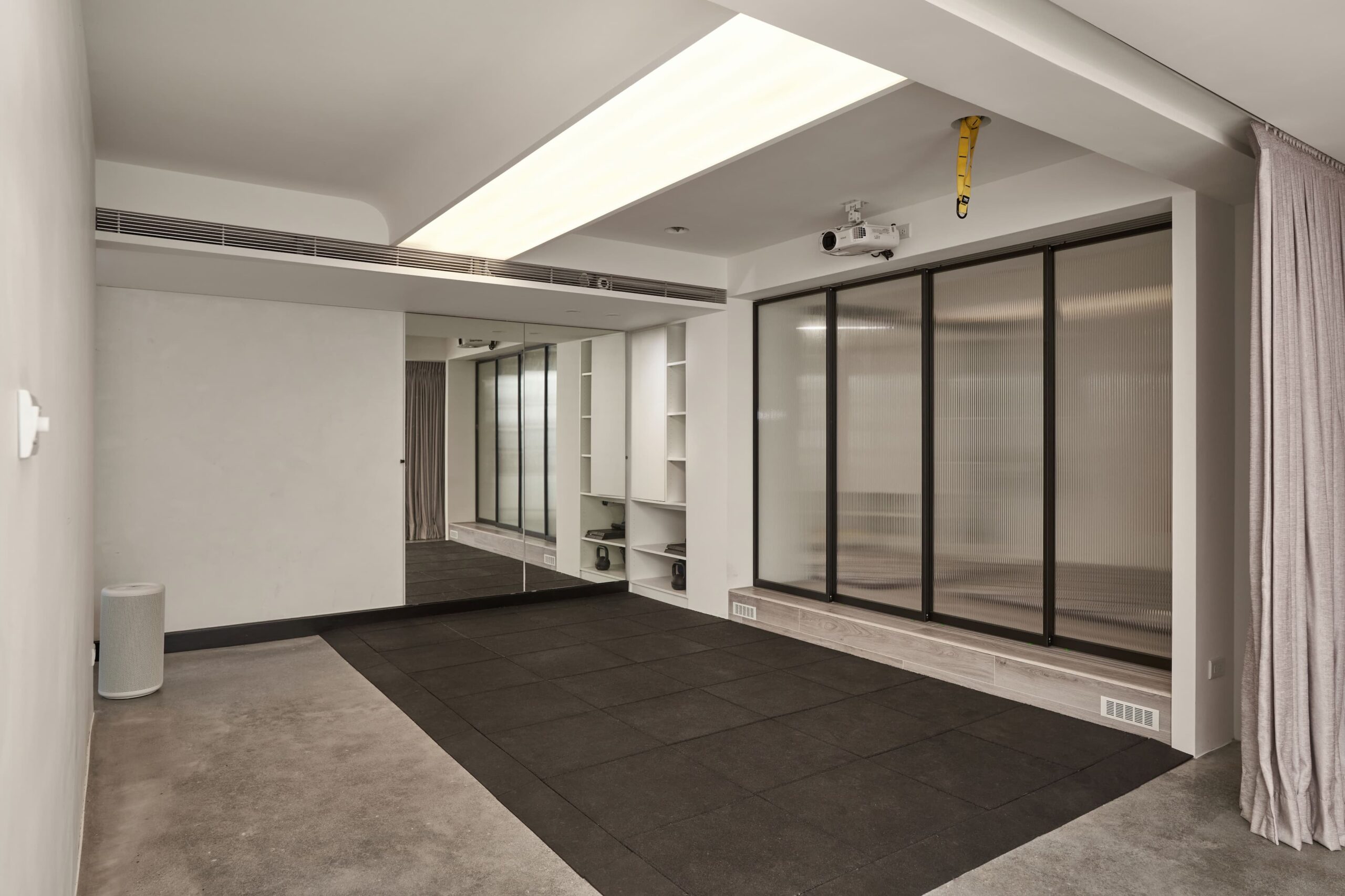 一般地下室空間缺少通風採光為其缺點,我們藉由天井將光線導引至地下室,使下上層空間得以連結,回字型動線規劃使空氣流通也同時活絡各區域間的流動性,改善地下室的居室品質。