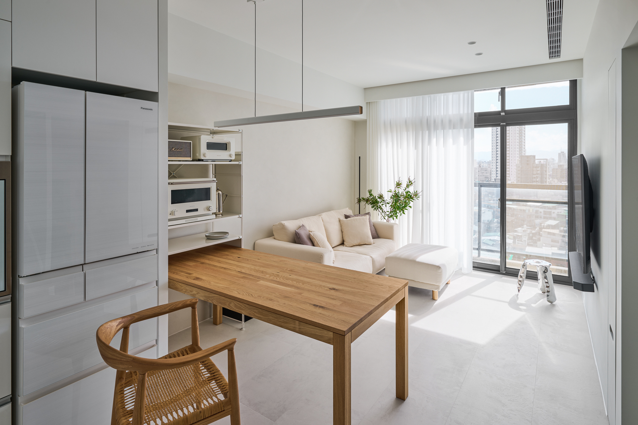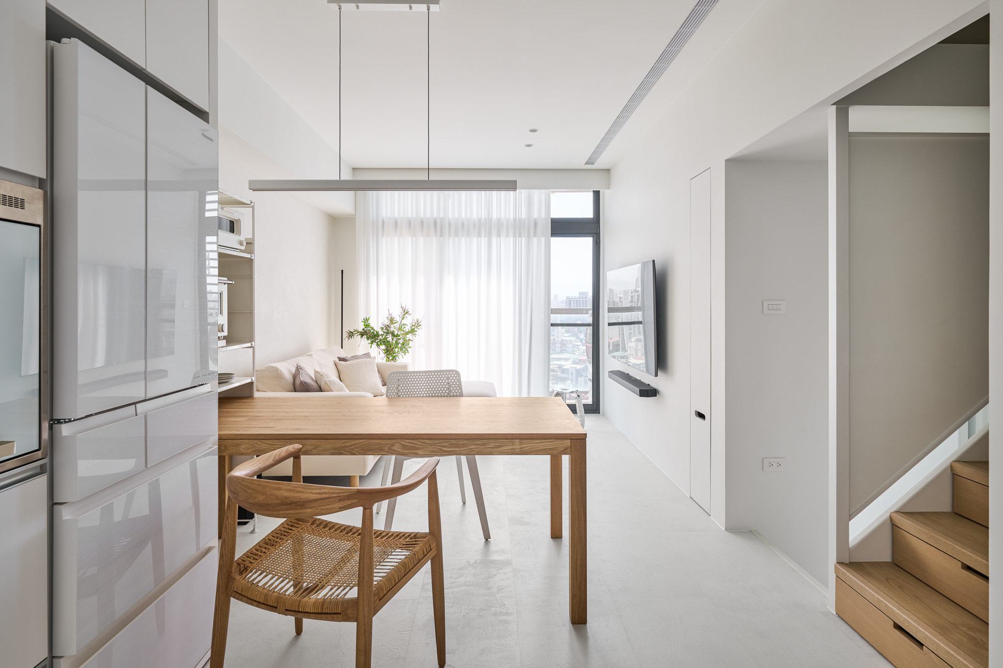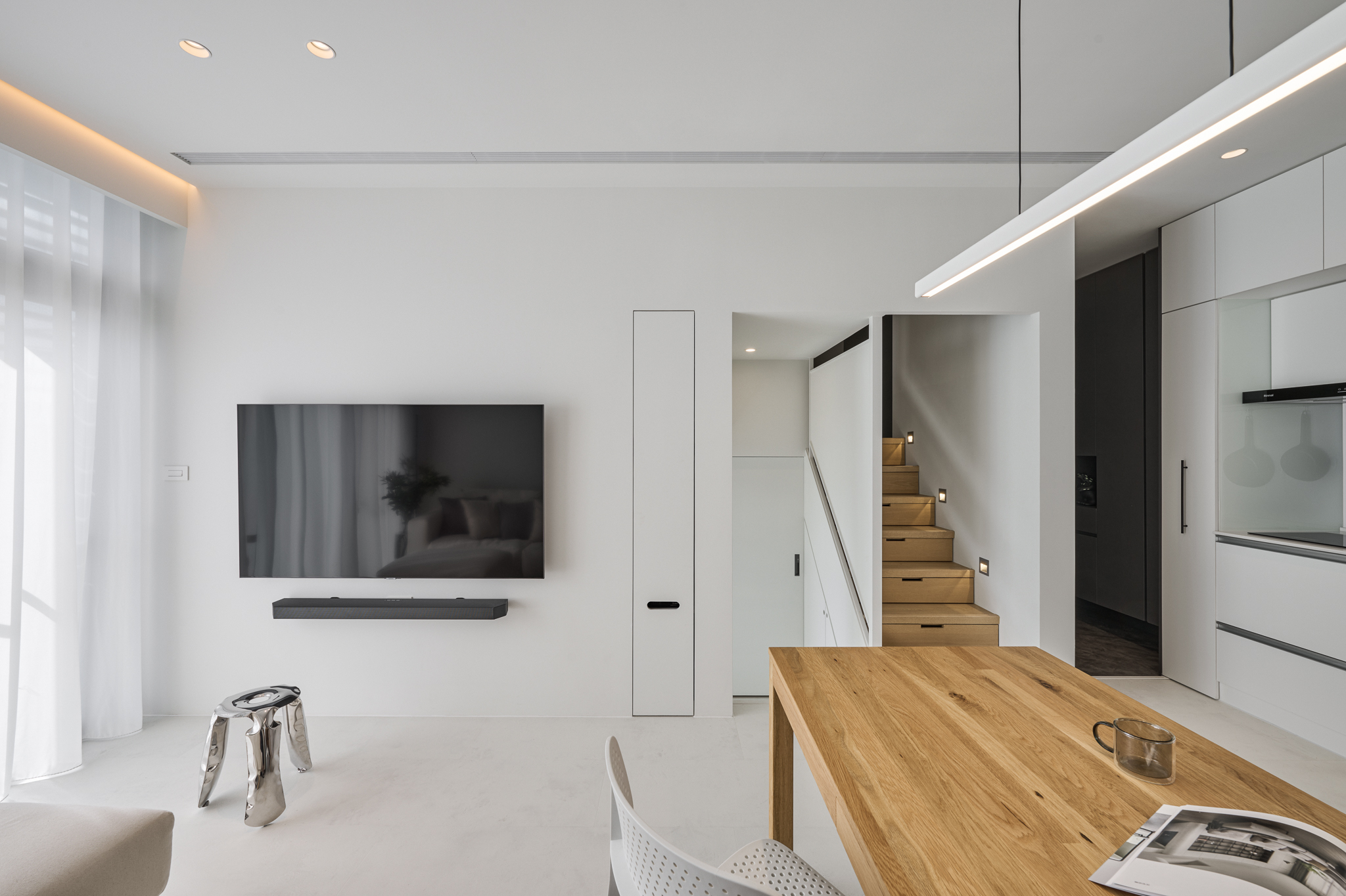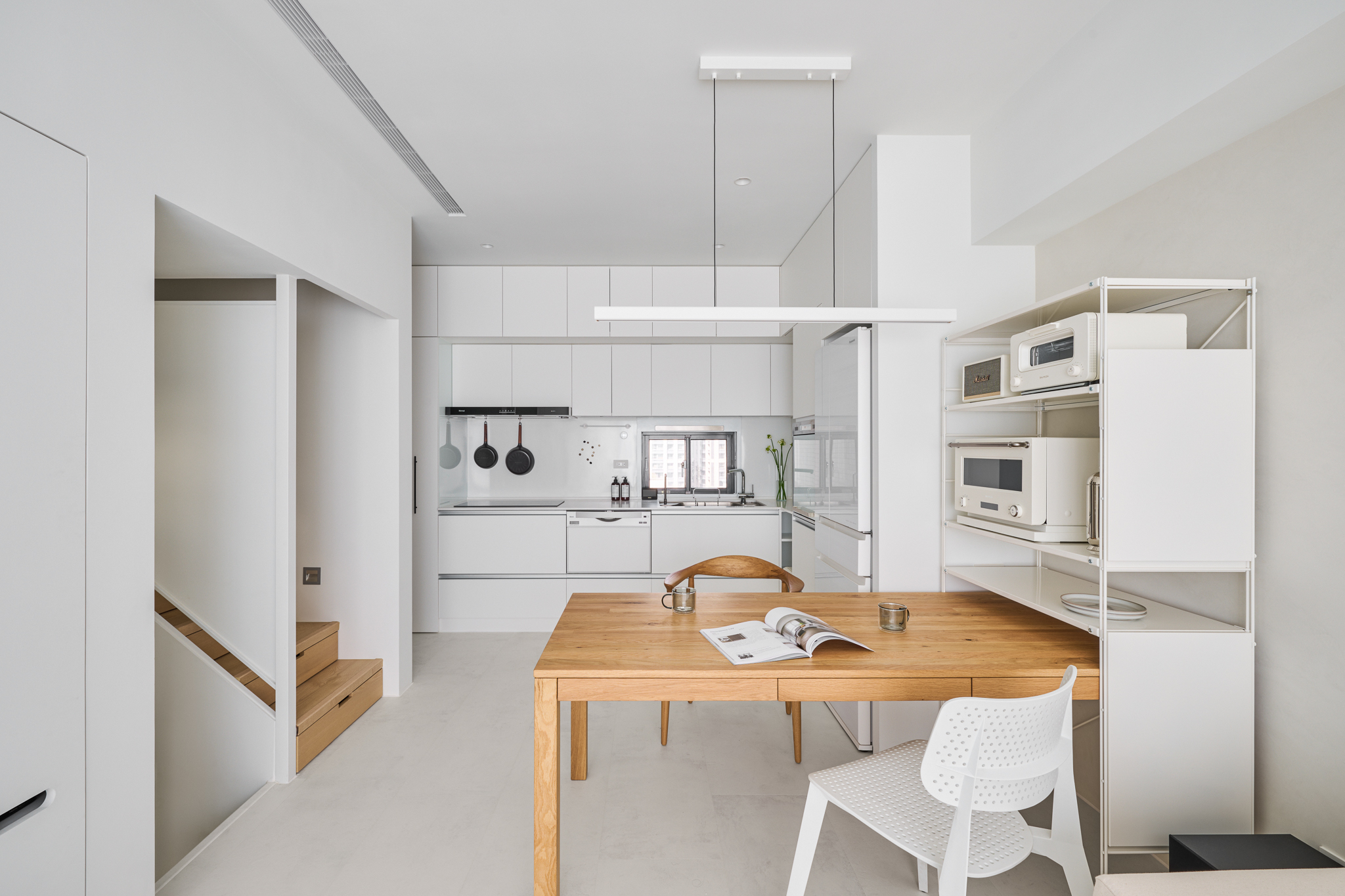 The site is a 47 m² loft structure with excellent southeast-facing natural lighting. Therefore, we hope to minimize excessive design techniques and present the essence and purity of the space. The entire room is based on white, reflecting the shifting light and shadow outdoors at all times, further enhancing the sense of openness.
