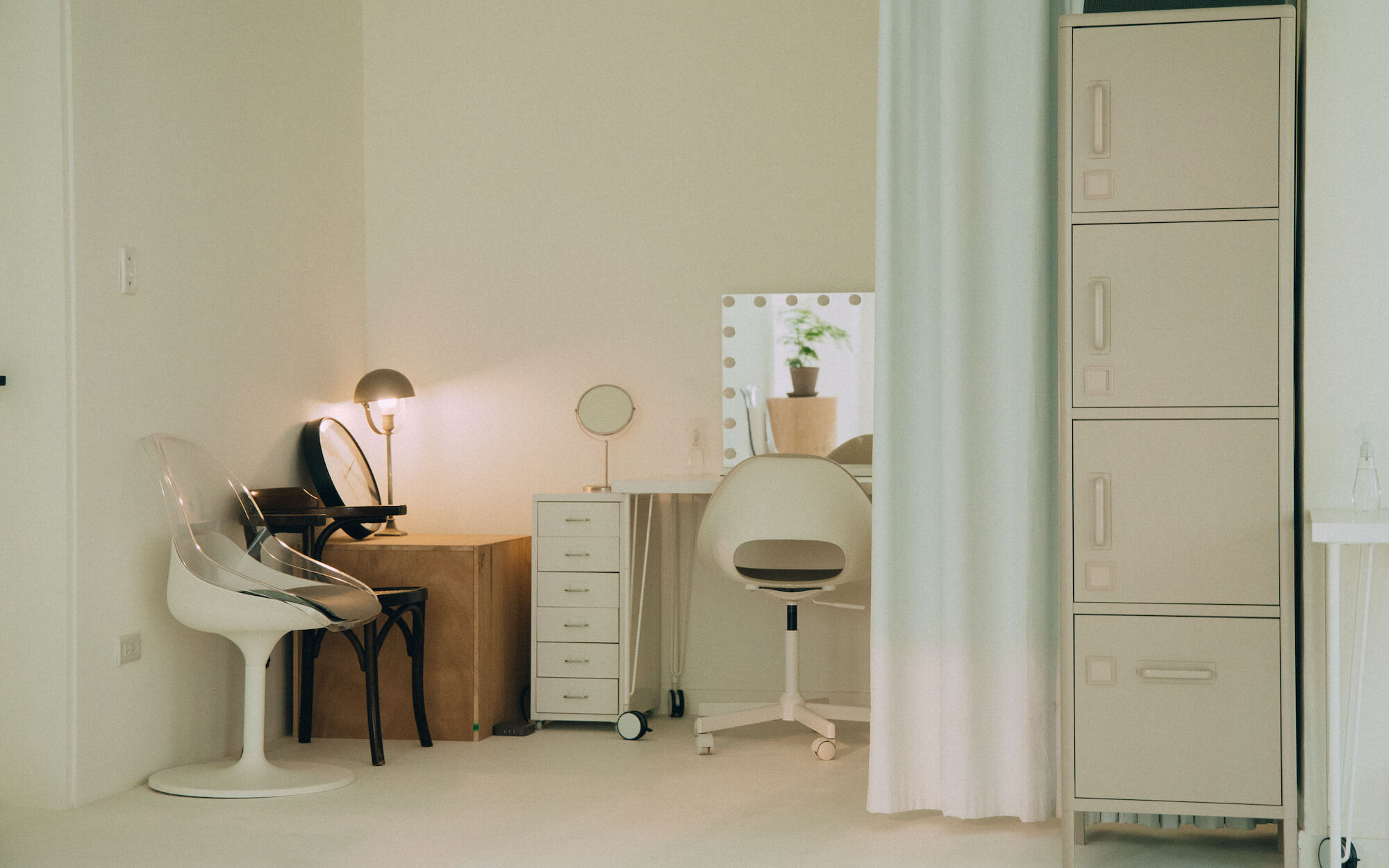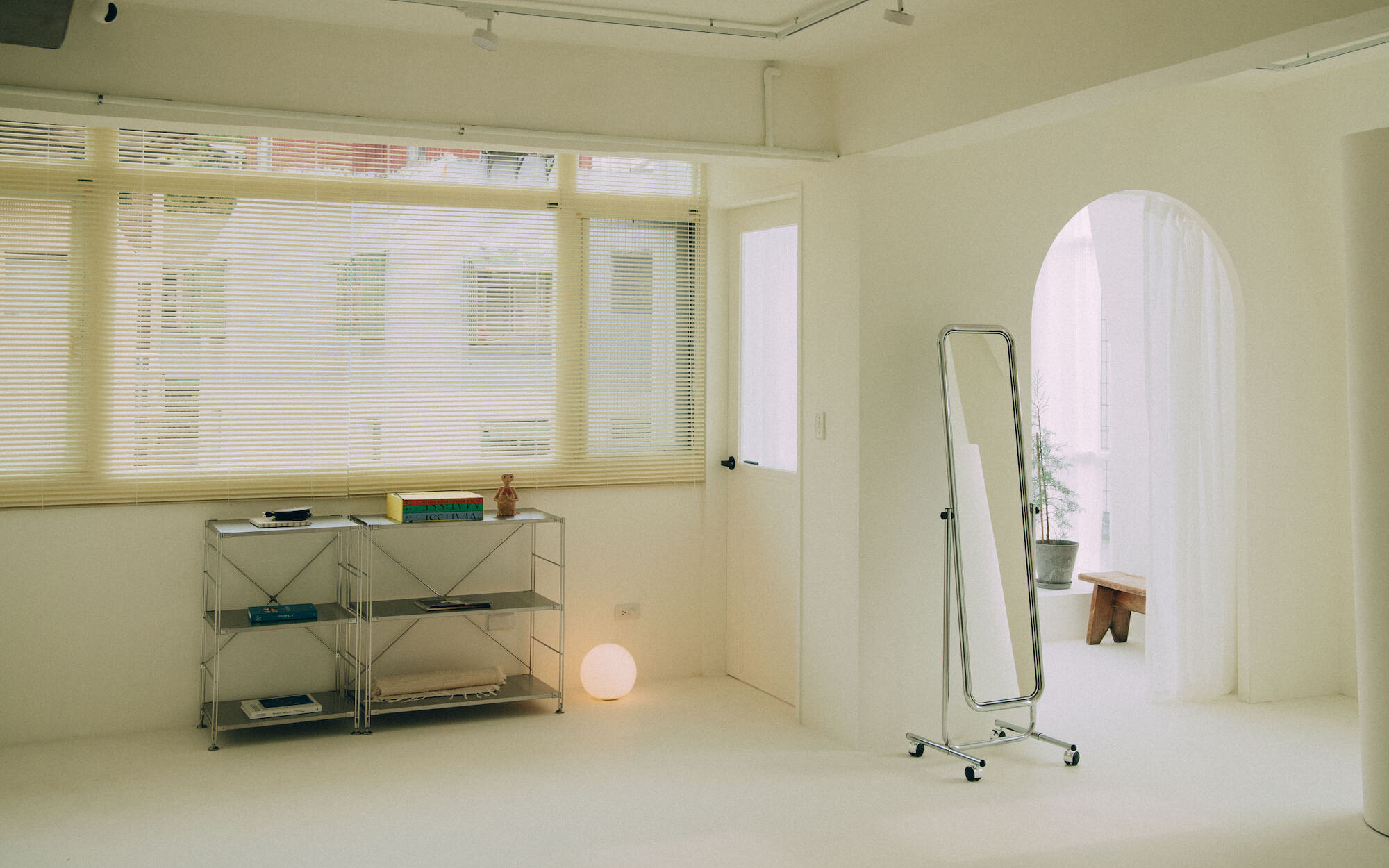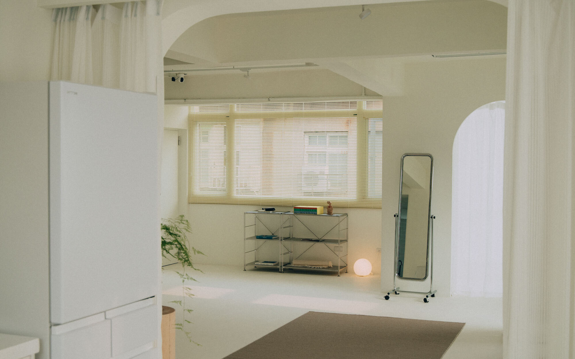 Natural light is one of the essential elements for a photography studio. Adopting a white color scheme as the overall tone, we aim to establish a clean and bright atmosphere that enhances the prominence of the photography subjects. Additionally, we introduce ample natural light to enrich the interplay of light and shadow, color layers, and the sense of air in the photography. The white base also enables light to produce reflection and diffusion, thus adding a soft touch to the works. Certain areas of the space can be shielded from natural light, allowing photographers to flexibly utilize artificial lighting to create various atmospheres and effects.