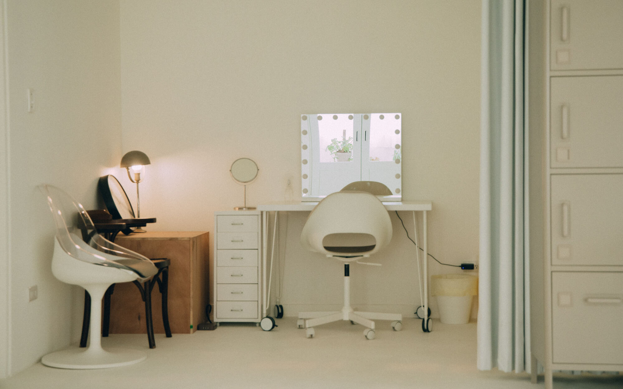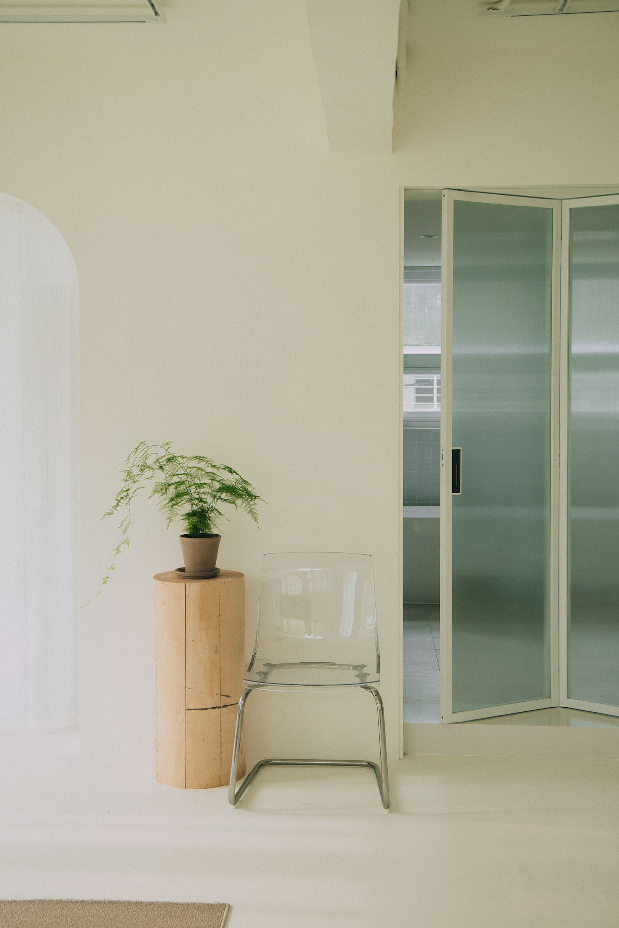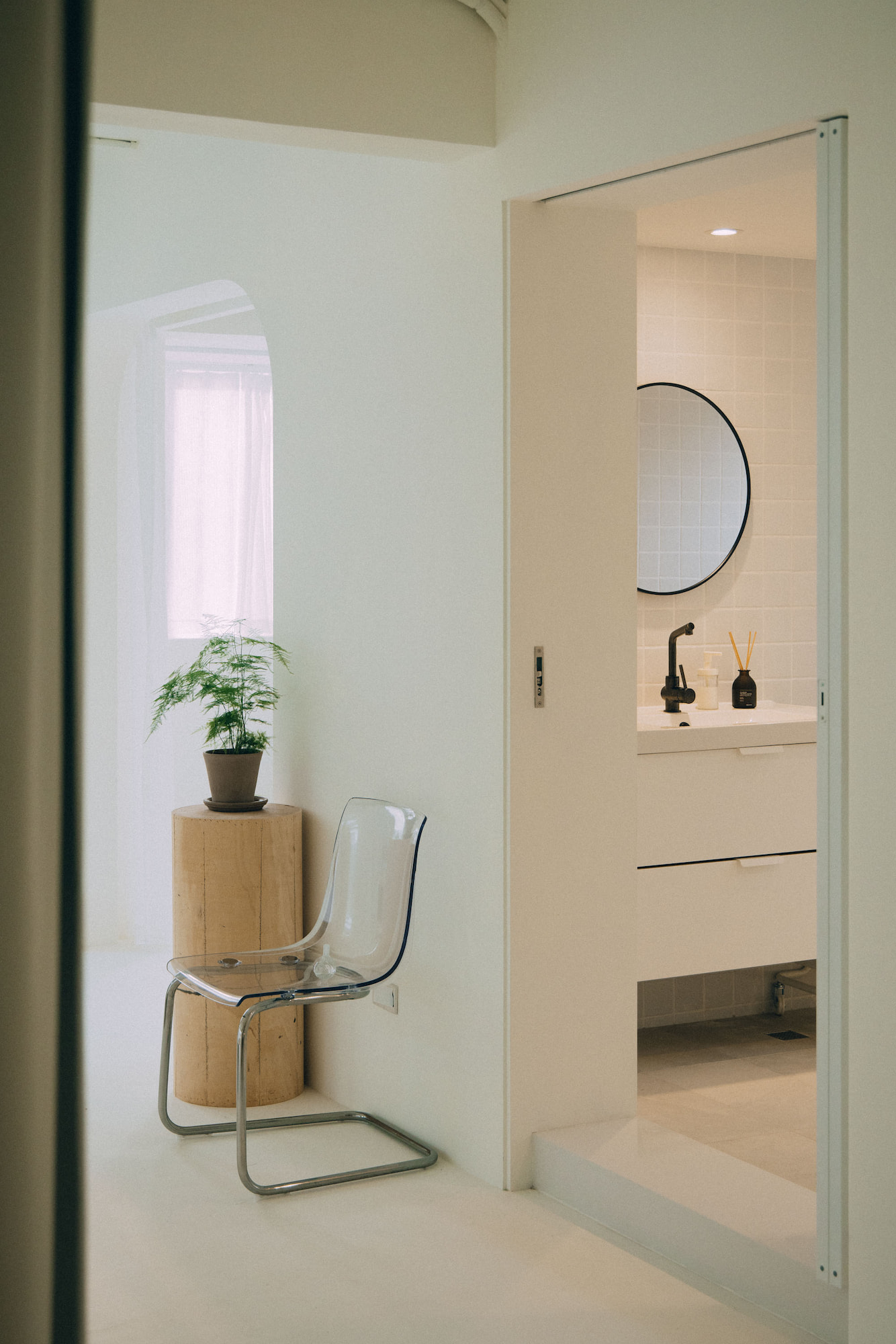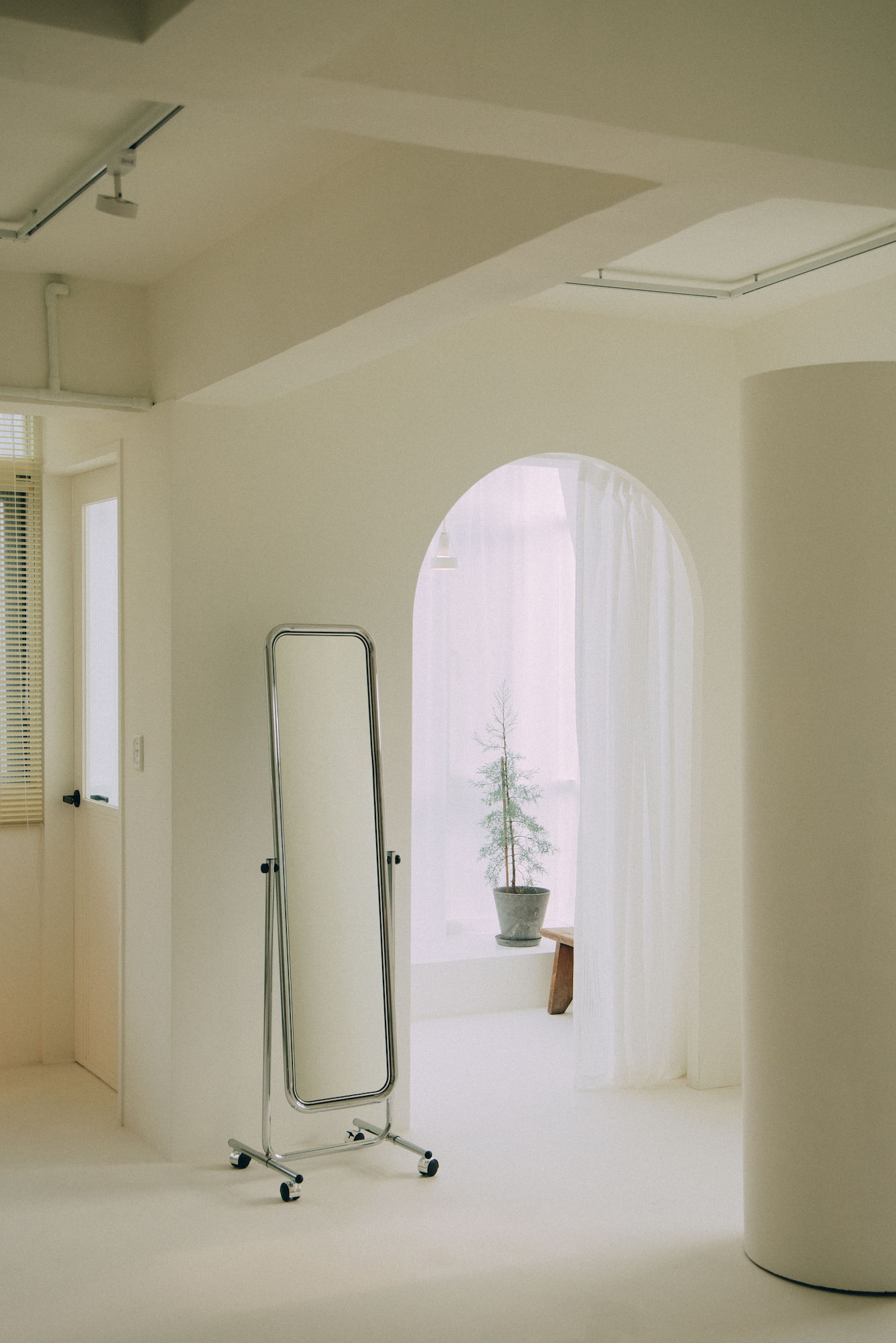 Natural light is one of the essential elements for a photography studio. Adopting a white color scheme as the overall tone, we aim to establish a clean and bright atmosphere that enhances the prominence of the photography subjects. Additionally, we introduce ample natural light to enrich the interplay of light and shadow, color layers, and the sense of air in the photography. The white base also enables light to produce reflection and diffusion, thus adding a soft touch to the works. Certain areas of the space can be shielded from natural light, allowing photographers to flexibly utilize artificial lighting to create various atmospheres and effects.